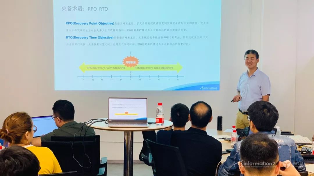 英方CTO周华着重介绍了英方的产品,其产品生态涵盖了备份、容灾、大数据以及数据管理四大领域,产品的技术原理主要是字节级复制和数据库语义级实时数据同步以及云灾备技术。期间,周华还详细的为学员介绍了每个产品的产品特点和应用场景等,让学员们能够深入全面的了解英方的各产品线,有效的帮助学员在之后和客户的交流过程中,能够更好的帮助客户理解英方产品。