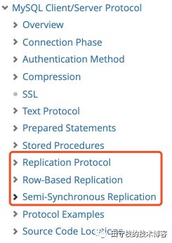 这并非是一件不可能完成的事,MySQL官网上已经提供好所有你自己编写一个mysql slave 同步binlog所需的相关背景知识,访问这个链接:https://dev.mysql.com/doc/internals/en/client-server-protocol.html,你将可以看到mysql 客户端与服务端的通信协议。下图红色框中展示了Mysql主从复制的相关协议: