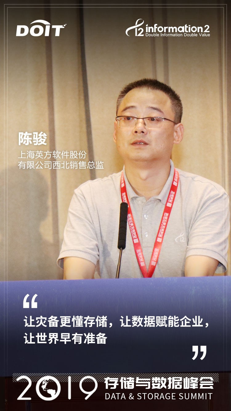 与以往存储与数据主题峰会相比,GDSS峰会全面提升了权威性、专业化、国际化及参展质量,设立多个主题论坛,包括SNIA(全球网络存储工业协会)论坛、存储数据与保护论坛、数据存储与应用论坛、信息存储学术论坛等,在数据存储与应用论坛,英方西北区销售总监陈骏做了《大数据时代下的灾备统一管理实践》的精彩分享。