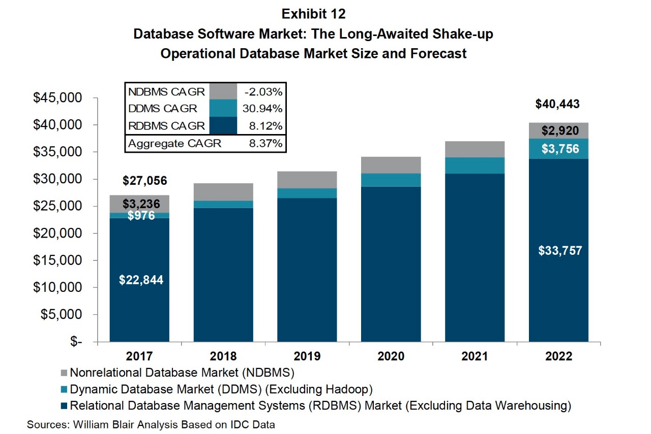 本文是由唐僧(网名)根据Willian Blair的《Database Software Market:The Long-Awaited Shake-up》相关报告进行整理的一篇笔记(有删减),通过作者对报告的解读,我们可以从中更加了解数据库市场的整体状况,在此,感谢唐僧(网名)的精彩分享。更多内容,大家可以关注他的公众号:企业存储技术。